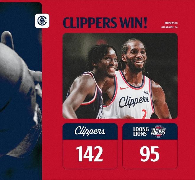 保罗首秀15+6,快船47分狂胜广州龙狮!小卡18分哈登9助半场打卡