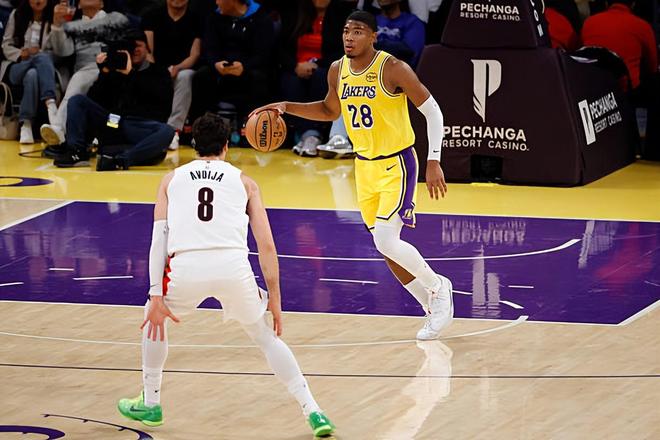 本场比赛中,湖人的先发锋线大将八村塁(Rui Hachimura)的状态显然是不太理想的。八村塁全场出场23分29秒,投篮9中3,三分线外3中2,仅得到了8分2篮板的数据,还有1次失误和1次犯规,正负值也是低到了全场最低的-28。八村塁在进攻端手感不佳,他的得分能力完全没有发挥出来,他在场上也是完全没有起到应该起到的作用。不仅在进攻端攻不进去,八村塁在防守端也是完全守不住。很显然,八村塁出现了防守专注度方面的问题,而且他的个人防守能力本来就比较一般,他在防守端也是被对手各种打爆。至少在本场比赛中,八村塁的表现是一塌糊涂的,他完全没有发挥出自己应有的水准,这也在很大程度上导致了湖人的这场惨败。